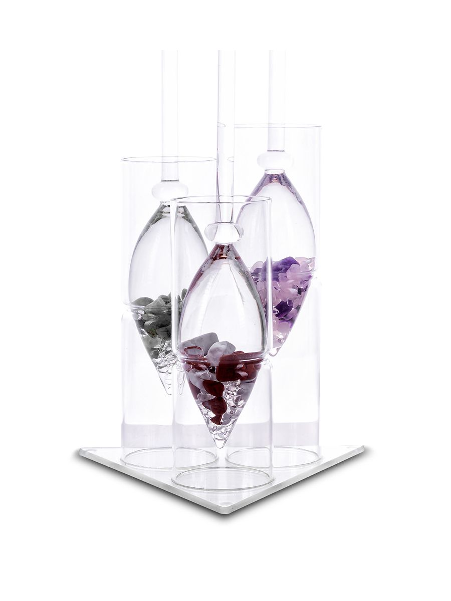 VitaJuwel a conçu ce support en verre constitué de trois tubes verticaux permettent d’accueillir 3 fioles VitaJuwel.